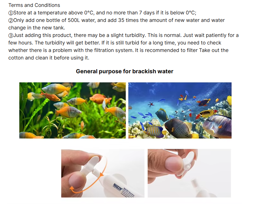 - يهيئ بيئة مائية صحية ومتوازنة بسرعة قياسية، مما يحافظ على نشاط وحيوية الأسماك.