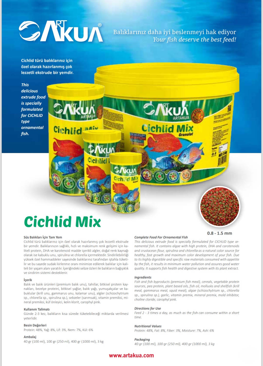 ✨ Cichlid Fish Mix from Art Akua - Perfect Nutrition for Your Fish ✨●High-quality Turkish product From the global company Art Aqua Rich in proteins and essential vitamins●