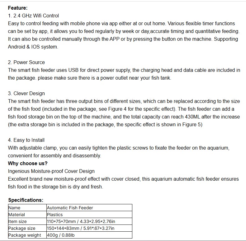 - النوع: جهاز تغذية أوتوماتيكي ذكي للأسماك.