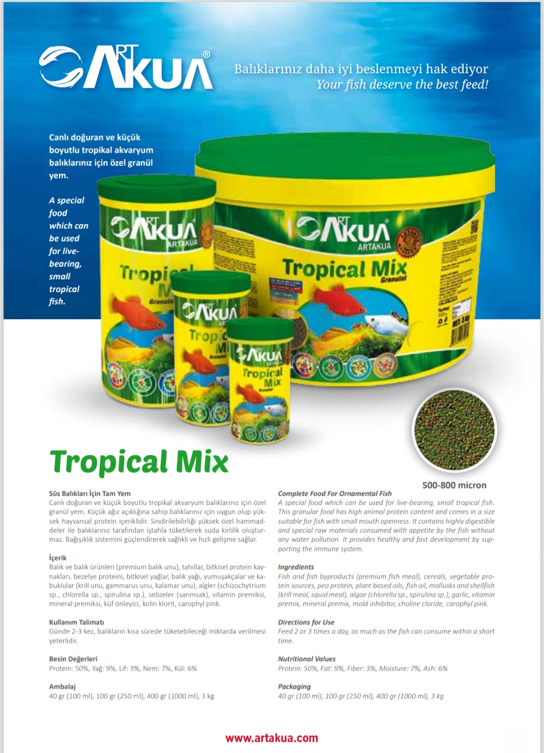 "Tropical Mix"،غذاء الاسماك الأفضل من شركة ARt Akua التركية