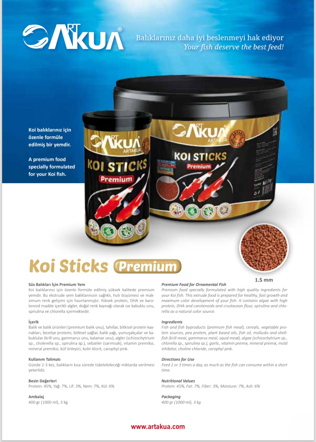 ✨ Aqua Art Aqua Premium Koi Sticks - the perfect nutrition for big ornamental fish ✨High-quality Turkish product from the global company Art Akua-