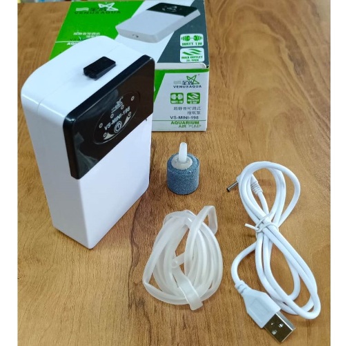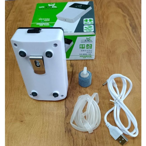 The mini rechargeable air pump for aquarium that is pictured has the following specification:1. Rechargeable: Comes with a rechargeable USB cable, making it easy to use without the need for electricity.2
