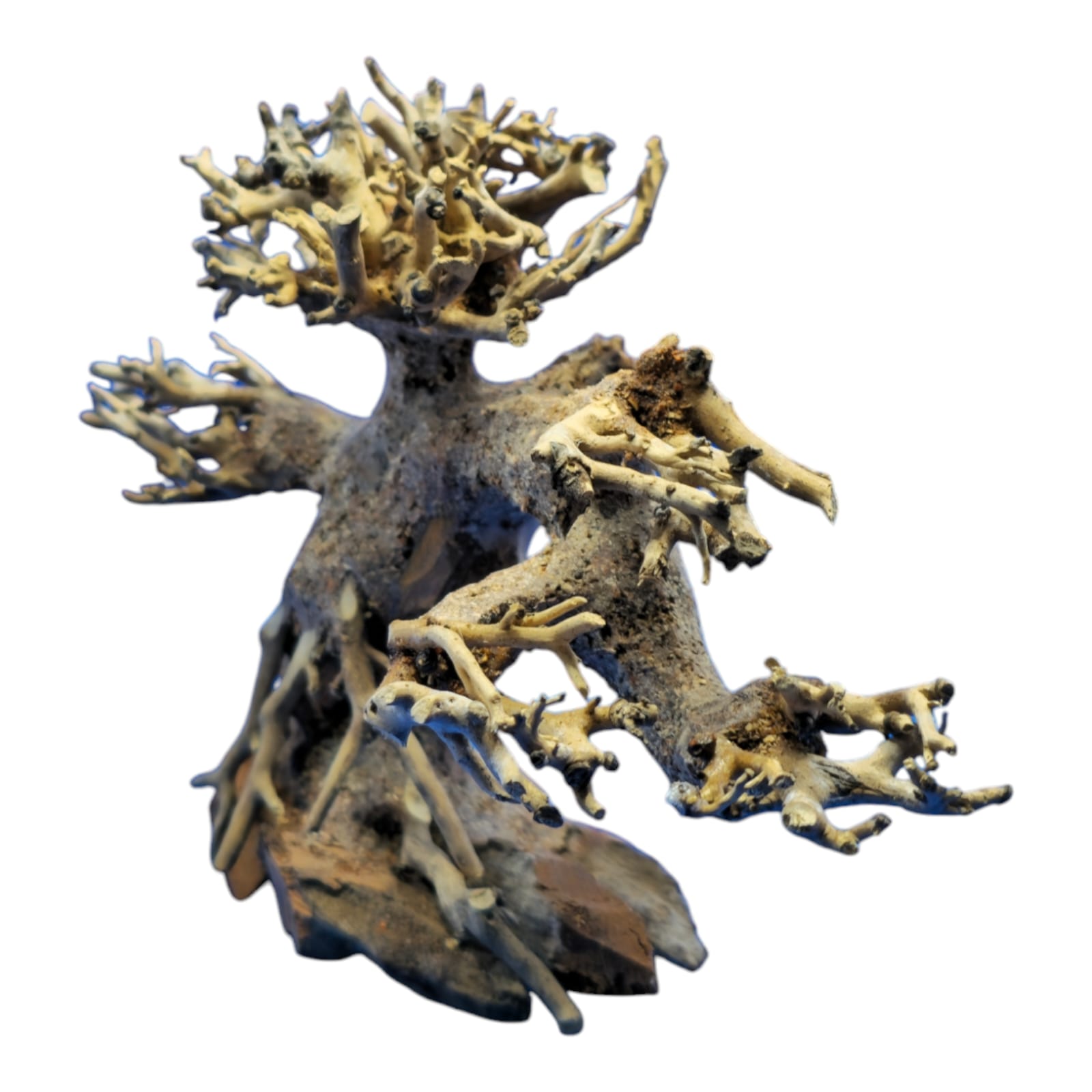 elegant and distinctive wooden decoration for aquariums is made of high-quality Brazilian wood. It features a natural design resembling a small tree,