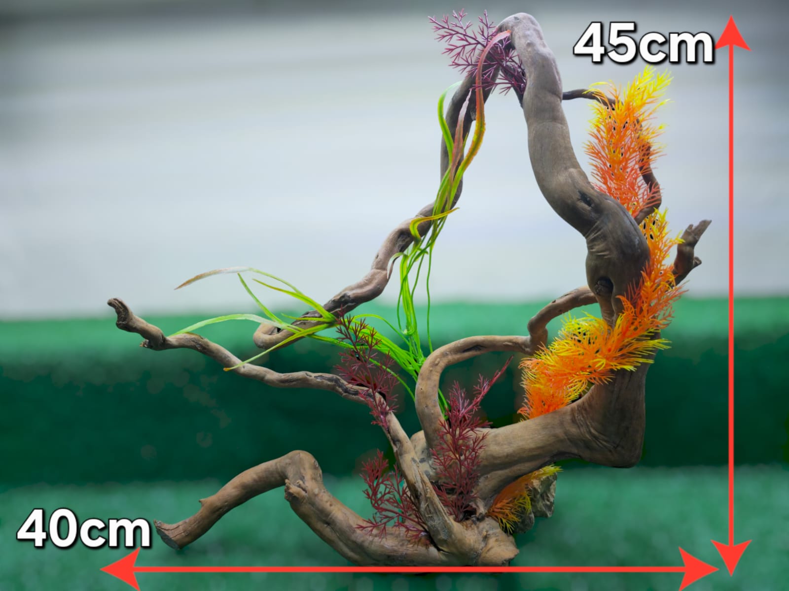 Add a natural and charming touch to your aquarium with the stunning and innovative scape! 🌿✨ Featuring a design that mimics the beauty of nature, it's crafted from natural wood and complemented with artificial plants in bright colors that add vitality and elegance to your aquarium.
