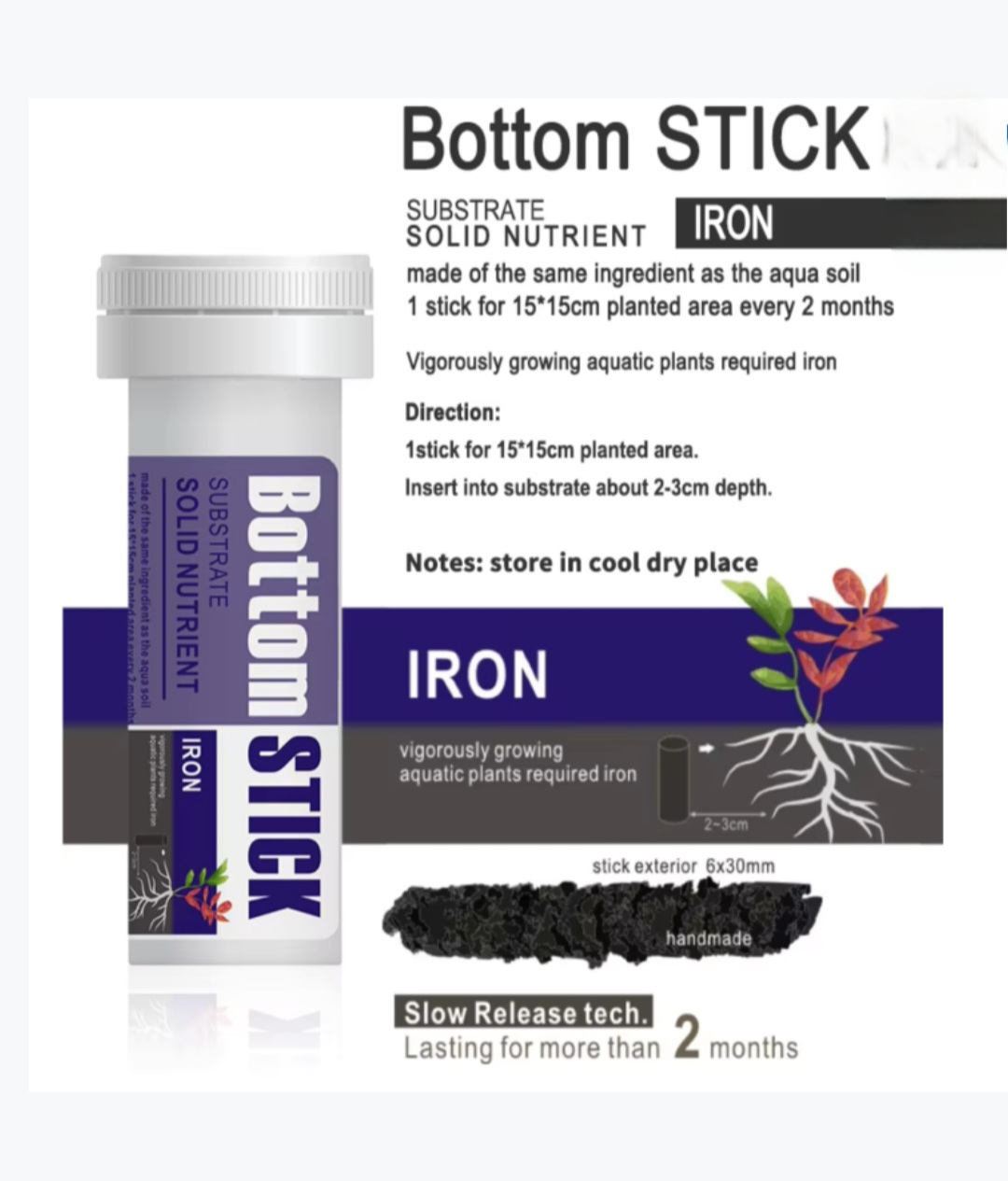 امنح نباتاتك المائية التغذية التي تستحقها مع Bottom Stick – مكمل الحديد الصلب للتربة!مصنوع من نفس مكونات التربة المائية عالية الجودة، هذا المنتج مصمم خصيصًا لدعم النمو الصحي والقوي للنباتات المائية التي تحتاج إلى الحديد.