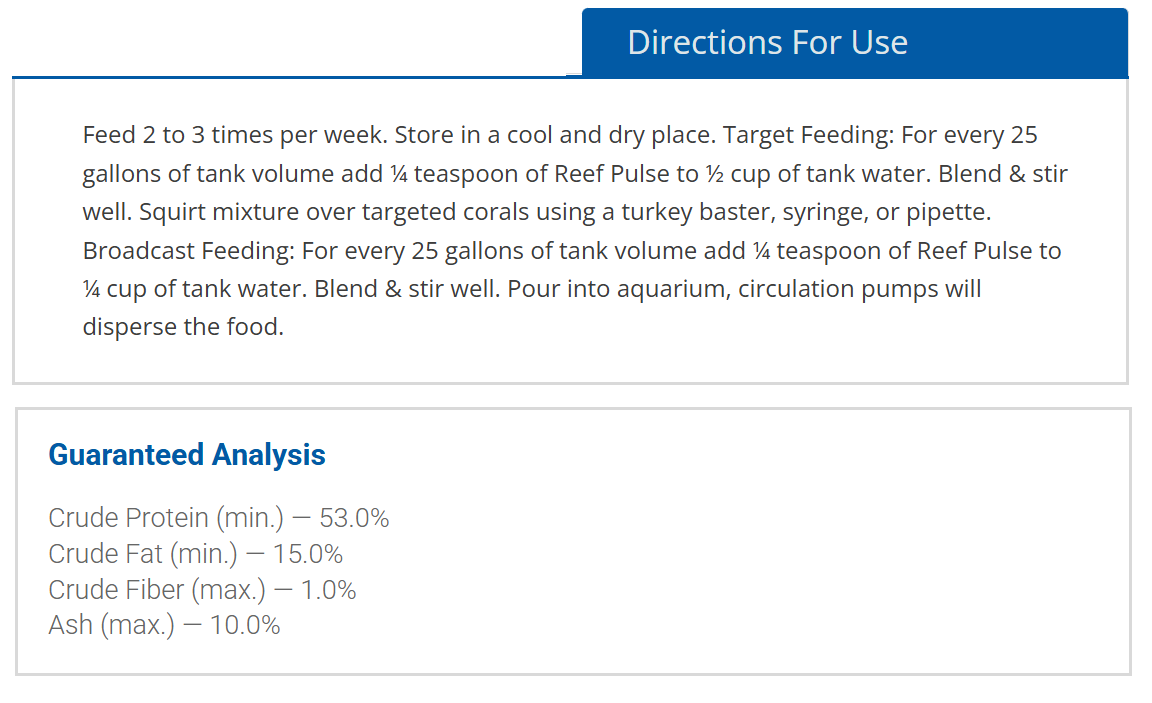 🧪 Usage Instructions: Mix the desired amount of Reef Pulse with aquarium water and gently target-feed corals using a dropper or pipette. Use 1–2 times weekly or as needed.
