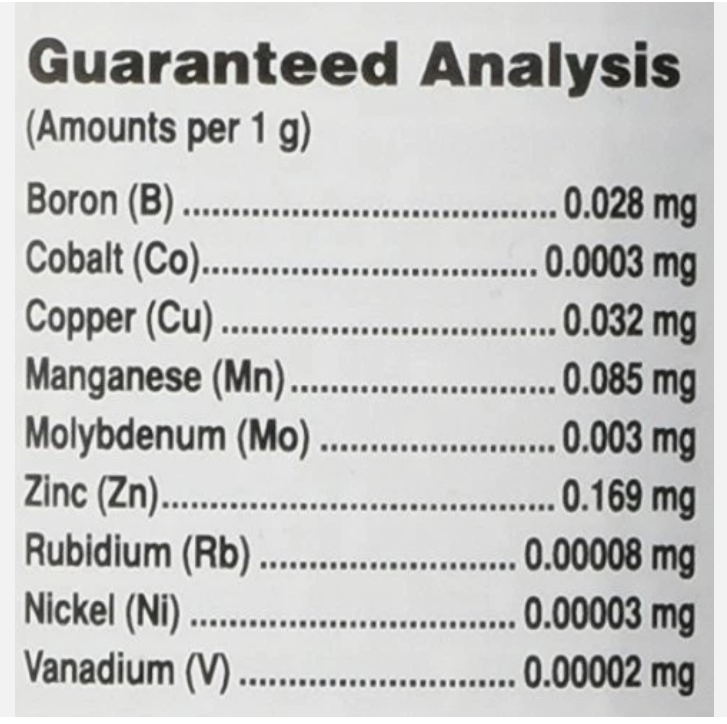 يحتوي على مجموعة متكاملة من العناصر النادرة (Trace Elements) الضرورية لنمو وصحة الشعاب المرجانية، والتي تُستهلك بمرور الوقت في الحوض ولا يتم تعويضها بسهولة.