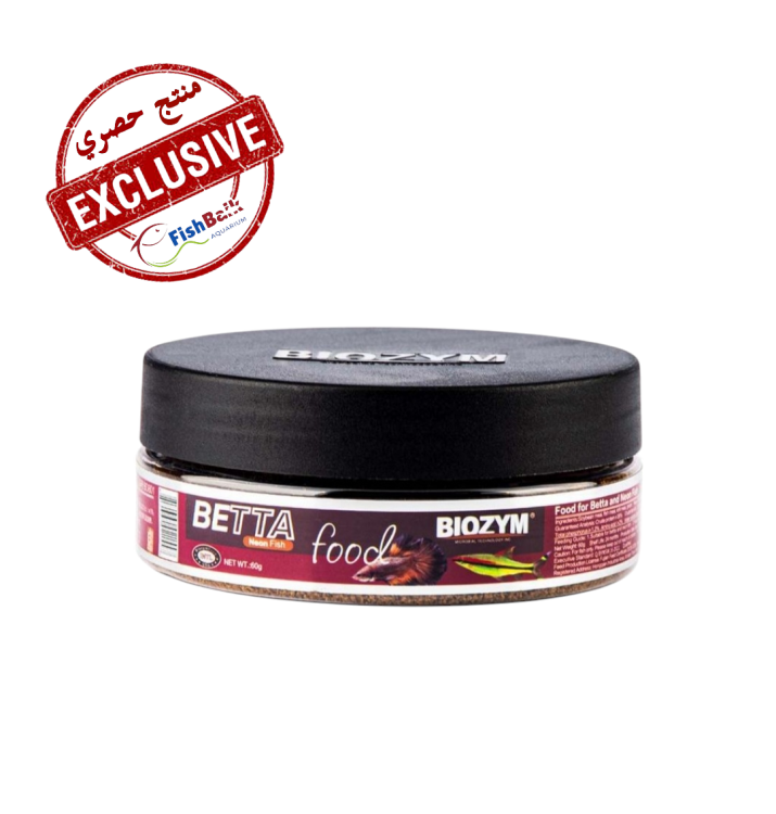 طعام Betta: مخصص لأسماك البيتا، يحتوي على تركيبة غنية بالبروتين والعناصر الغذائية الضرورية للحفاظ على حيوية ولون الأسماك. يأتي في عبوة بوزن 60 جرام، ويتميز بتركيبته الفريدة التي تعزز مناعة الأسماك.